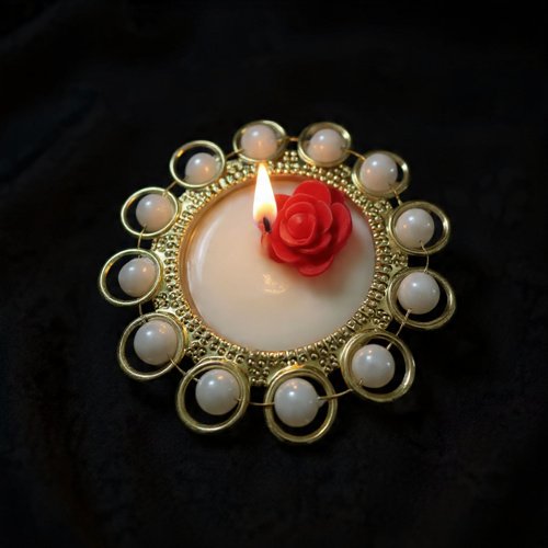 A delicate pearl-finish tealight that adds a soft glow to intimate settings. Ideal for festive décor, pooja spaces, or dinner tables.